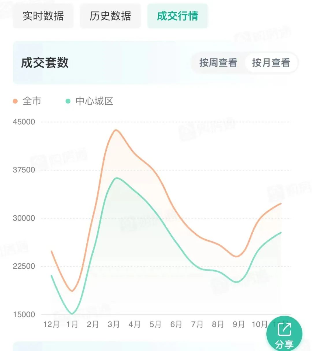 8-9月一系列的政策刺激后,呈现效果并不明显,10-11月,成都新房和二手房成交量均在3w套左右,放全国是独立行情,但在成都,也只是今年平均水准,12月以来,下行趋势明显,同时段比上个月少成交约2000套!